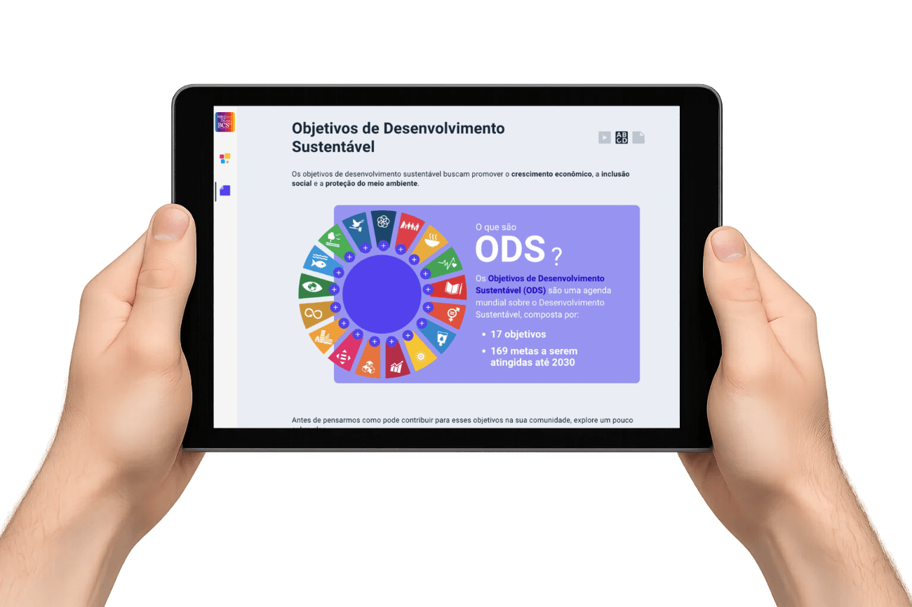 12 ebooks ou livros físicos do Aluno e do Professor, do 1º ano do Fundamental I até o 3º ano do Ensino Médio.